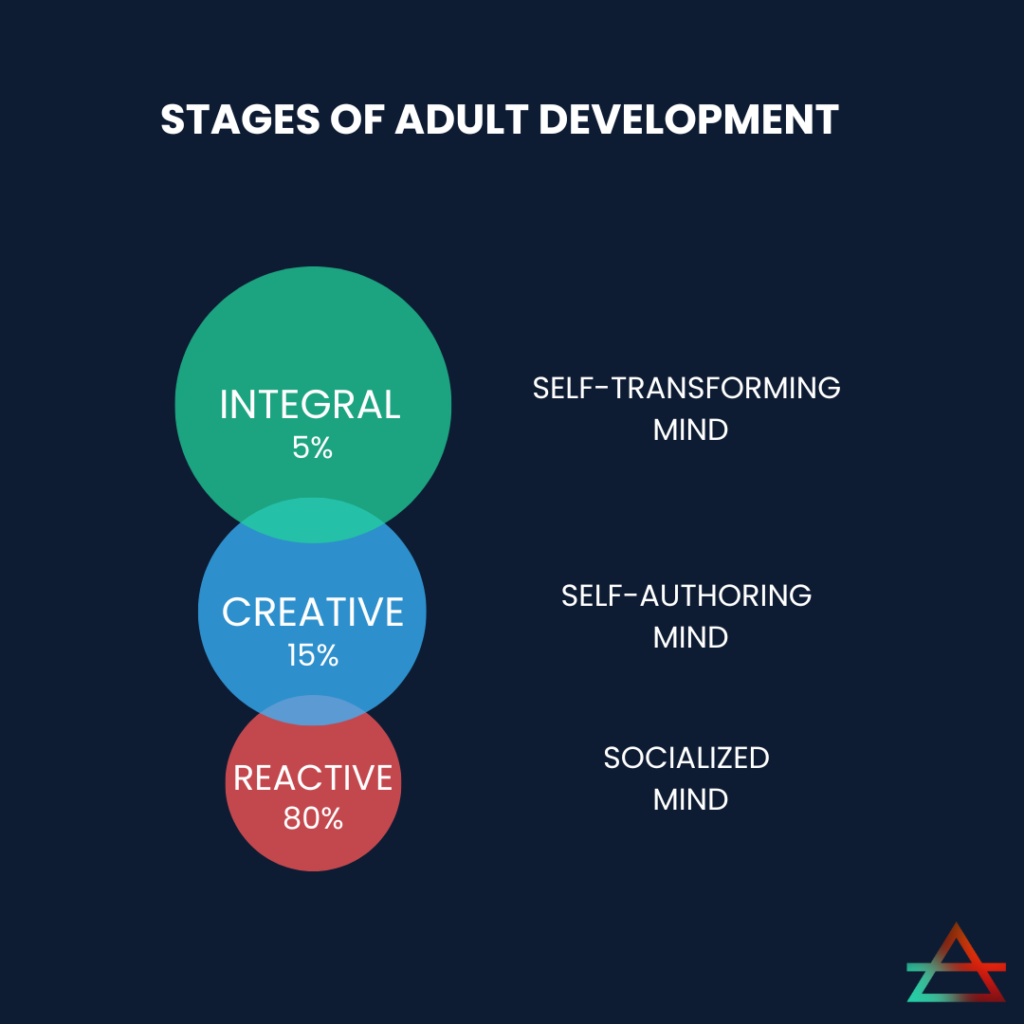 The above categories make up 85% of leaders, all of whom operate from the reactive or socialized-mind, or level of development. It’s called reactive because they look to the outside to determine your value and worth. The person operating from the reactive mind has unconscious fear-based motives and establishes their self-worth externally. It is conditional. Dependent on how they are perceived and whether they live up to the expectations they believe others have of them. Finding your worth externally through any approval seeking behaviour limits your behavioural options, professional effectiveness, growth and development. It furthermore makes you easier to manipulate. If your self-esteem hinges on how you are perceived, you will always act in ways that you believe will be welcomed and approved by others. If your identity, security and self-worth is always based on what you believe the world expects, you will remain reactive to the feedback you receive. You will only be “ok” if you live up to the self-defining assumptions supplied by your environment. In effect you will mould and adjust who you are to conform to the requirements of the day, not according to your values, intentions and vision. This naturally hinders authenticity.