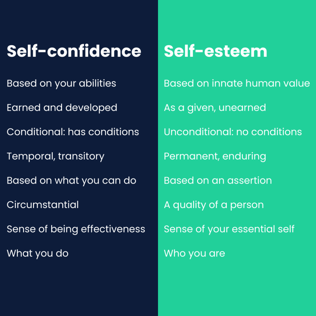 I believe this is a result of misdiagnosing and confusing the lack of confidence with the lack of self-esteem. Let’s define them.
